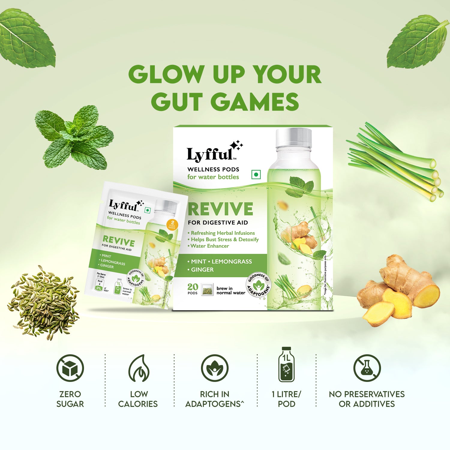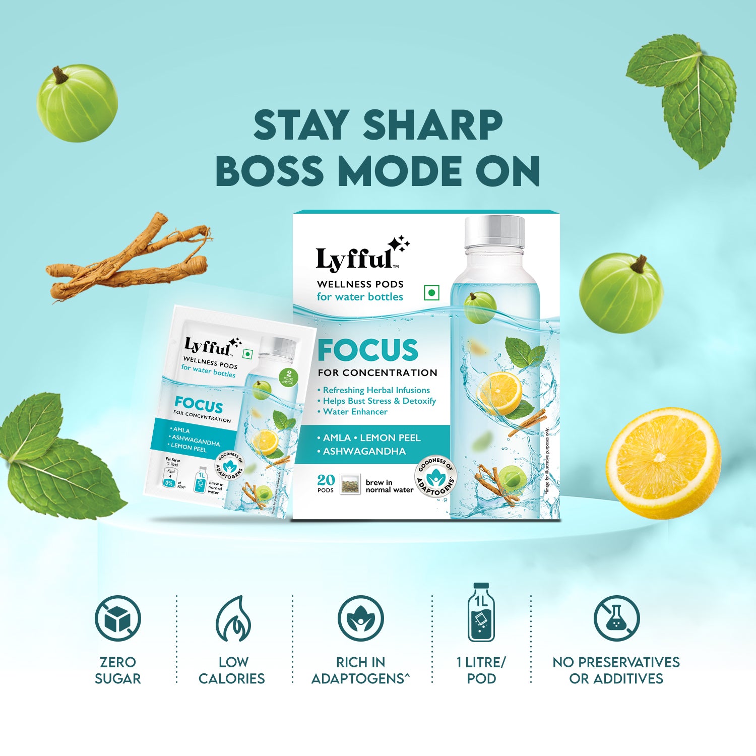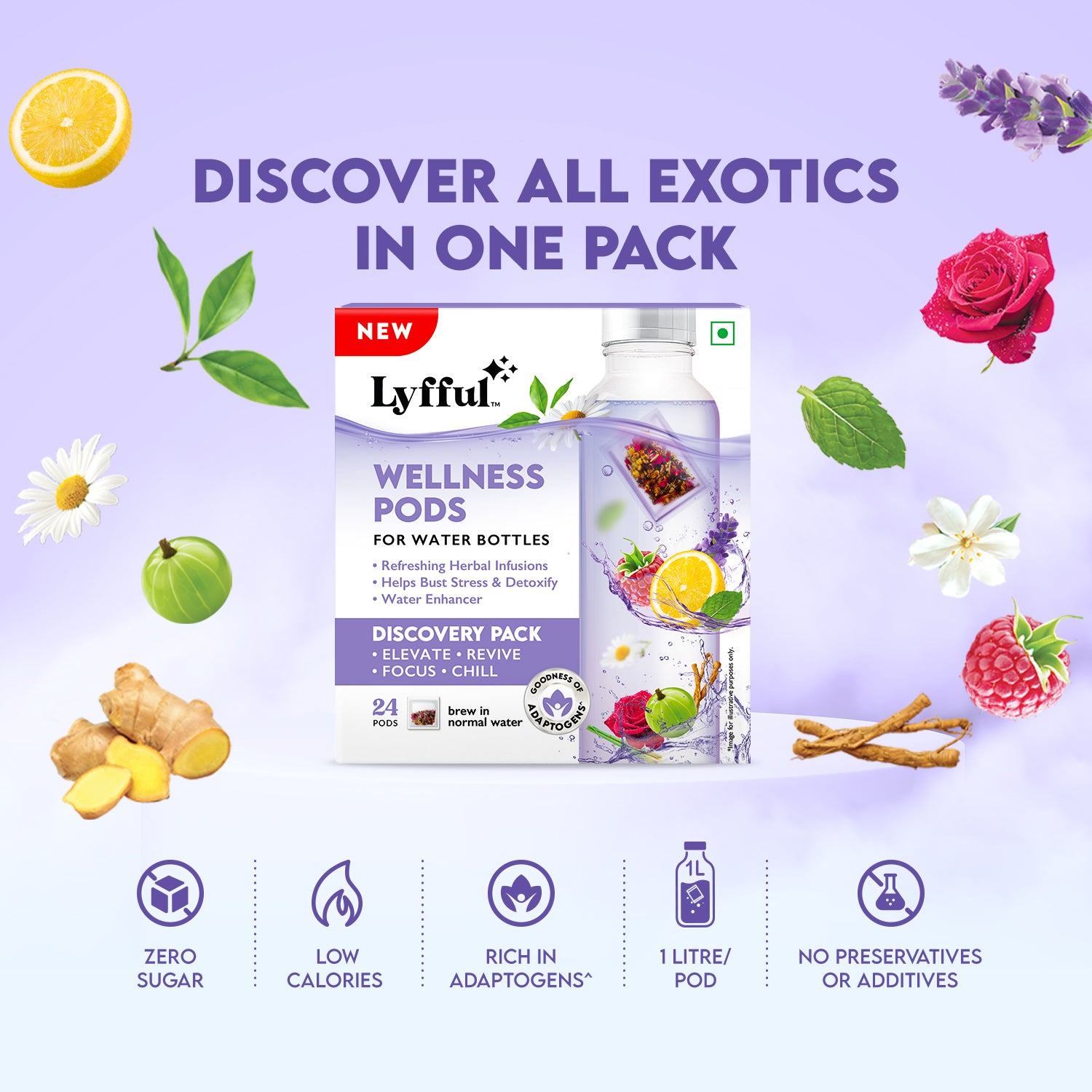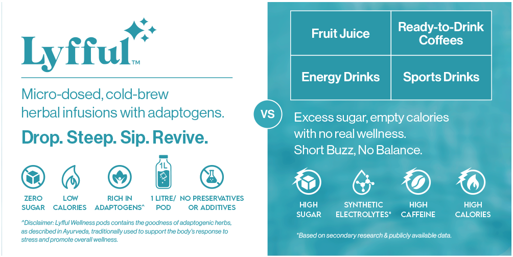 LYFFUL Wellness Pods are innovative hydration enhancers crafted with herbs, florals,and spices that transform ordinary water into a functional wellness experience.Drop a pod into your water, sip, and revive with every serving.