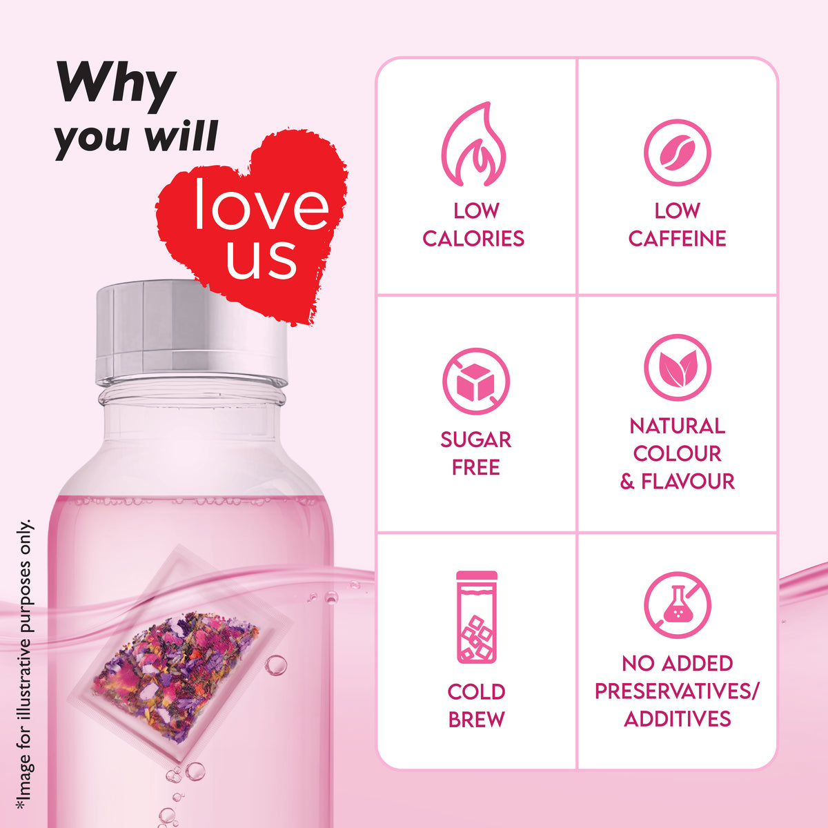 Sip on a flavour-rich blend of berries, herbs, and florals with a naturally sweet, tangy twist. Refreshing and calming, it’s your perfect unwind in a bottle – your daily ritual for relaxation and self-kindness.