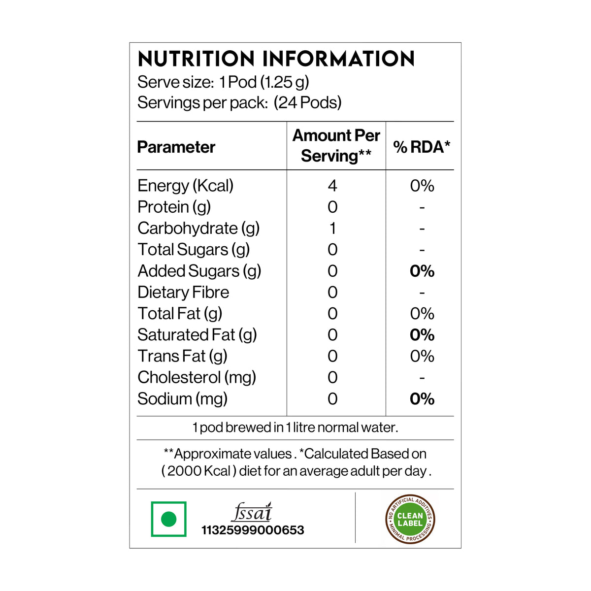 Each pod contains carefully selected herbs, florals, and spices - no artificialflavors, no added sugars, no preservatives. Just honest-to-goodness ingredientscrafted by food science professionals. We believe in real ingredients, nothingfake, ever.
